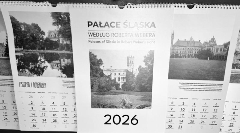 Inspiracją dla kalendarza 2026 stało się monumentalne dzieło Roberta Webera „Schlesische Schlösser”, wydane w Dreźnie. To kilkutomowy, niezwykle cenny album dokumentujący nieistniejące już dziś rezydencje Śląska – prawdziwy pomnik utraconego piękna regionu.