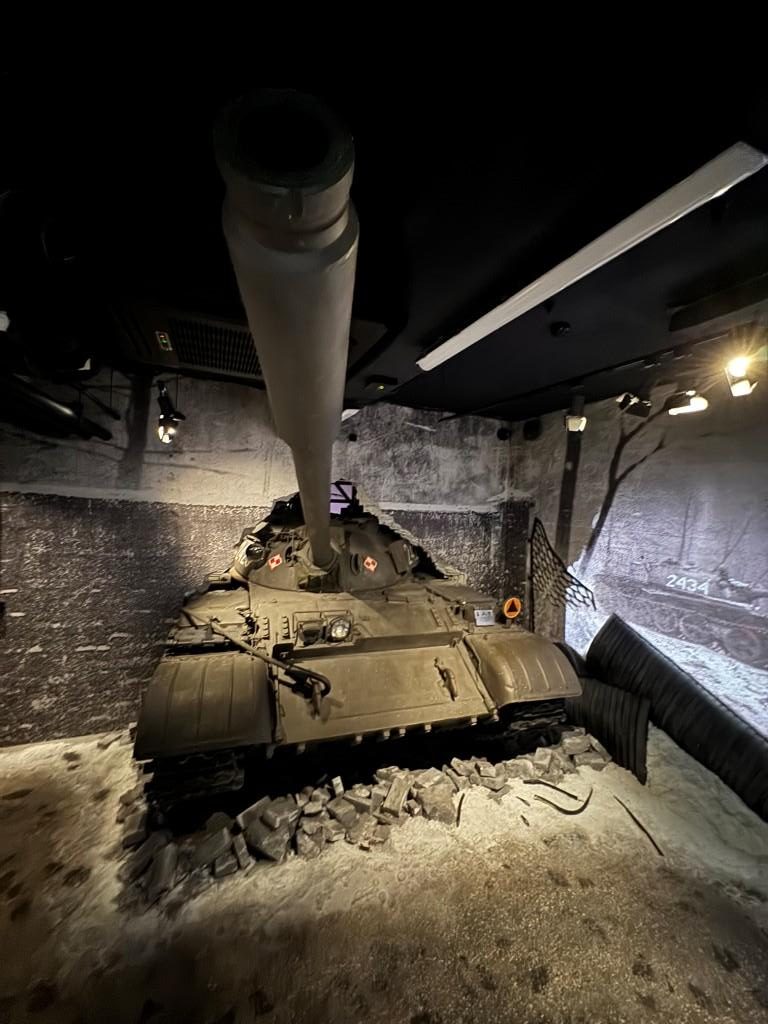 Potem przechodzimy do przestrzeni przypominającej chodnik kopalniany. Stoi tam czołg — taki sam, jak te, które brały udział w pacyfikacji kopalni. To jedno z najbardziej wstrząsających miejsc. To tutaj upamiętnia się dziewięciu górników poległych 16 grudnia 1981 roku.