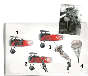 Idea spadochronu była dużo starsza, poważniejsze prace nad masową produkcją rozpoczęły się w epoce rozwoju balonów i sterowców z ich wykorzystaniem militarnym.Spadochrony wykorzystywane w celach ratunkowych dla załóg balonów czy sterowców były wielkie i nieporęczne .Gdy na scenę wojskowości wkroczyły pierwsze samoloty różni wynalazcy zaczęli myśleć nad wynalezieniem spadochronu dla pilotów. Decydenci wojskowi i piloci podchodzili do spadochronów z nieufnością. Ówczesne pierwsze wynalazki były zawodne i nieporęczne. Wielu pilotów zginęło podczas testów czy pokazów z udziałem pierwszych,prototypowych spadochronów. Pierwsze spadochrony były umieszczane poza kabiną pilota, po ich uruchomieniu rozwijająca się czasza spadochronu “wyciągała” pilota z kokpitu na zewnątrz. Konstrukcja samolotów dwupłatowych z tej epoki składała się z wielu linek i drutów w które zaplątywał się często rozwijający się bez kontroli spadochron.