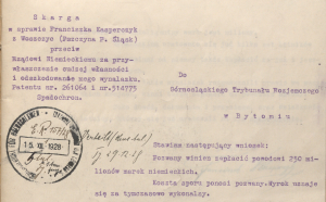 I Wojna Światowa, a w zasadzie jej druga połowa z lat 1916-1918 generowała duże straty wśród pilotów samolotów bojowych. Niemieccy dowódcy zaczęli się rozglądać za wdrożeniem skutecznego spadochronu ,który mógłby ratować lotników.Zauważyli to prywatni przedsiębiorcy którzy starali się pozyskać patenty od wynalazców, konstruktorów i zainteresować tym armię. Co się działo z patentem Kasperczyka ? Sporo wiadomości w tej sprawie udało mi się pozyskać z Biura Narodów Narodów Zjednoczonych w Genewie (filia ONZ) . Jest tam archiwum Ligi Narodów (poprzedniczka ONZ) a w nim min. dokumenty Górnośląskiego Trybunału Rozjemczego w Bytomiu.Górnośląski Trybunał Rozjemczy (fr. Le Tribunal Arbitral pour la Haute-Silésie) w Bytomiu był międzynarodową instytucją arbitrażową powołaną w 1922 r. na mocy konwencji genewskiej. Jego celem było rozstrzyganie sporów między Polską a Niemcami wynikających z podziału Górnego Śląska