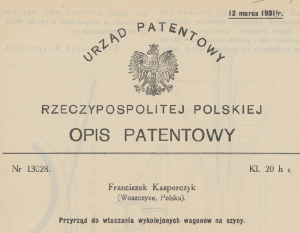Kasperczyk zgłosił w latach 30tych do Urzędu Patentowego w II RP kolejne wynalazki związane z koleją i górnictwem oraz zabawkę-kalendarz. Nie wiadomo czy otrzymał za nie jakieś pieniądze.