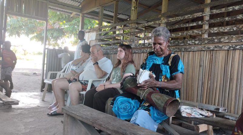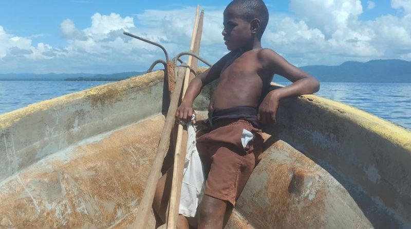 rybiorzōm ze Wyspy Yuo Island i ôd dzisiej bydzie ôna tam z nimi pływała po morzu. Niy wiym yno, co na to powiy mōj Velorex, bo żech mu jōm zebroł. Ci ludzie na tych wyspach sōm tak samo uśmiychnyci, rzyczliwi a chyntni do pōmocy, jak ci znad rzyki Sepik, ale sam sōm ôn bliżyj „cywilizacyje“, majōm chałupka do gości, przinosiyli nōm gorko woda we termosie, talyrze, szolki. Mieli tyż ôni dlo gości madrace, moskitiery. I niy byli tacy zaskoczōni, jak zejzdrzeli tela bladych twarzōw. I nawet kokoty jakoś cicho pioły, coby nas niy pobudzić. I prosia (pik) za głośno niy kwiczało. I te strōmy a kwiotka były trocha posadzōne, a niy taki, co kaj urośnie. We kościele mieli my mszo bez dwa dni. Ôdprawiali jōm farorz Rōman po polsku, a czytania i wanielijo czytali miejscowi ludzie. Ôni tyż zaśpiywali pora pieśniczek. A jo żech tego trocha słōchoł a nagrowoł. Sam te kościoły tyż sōm fajne, skrōmne. Tako lauba: trocha dachu ze blachy a ściany yno taki do pōł bez ôkyn. Dźwiyrzi tyż niy ma. Pod dachym ptoki majōm gniozda, przi ôłtorzu spino sie jakiś pajōnk, ławki pozbijane ze surowego drzewa, a ludzie ôstawiajōm strzewiki (lacze – japōnki) przed dźwiyrzami, a wlazujōm boso do kościoła. Wczora mieli my mszo na 9:00 a było sporo ludzi (na cołkij wyspie miyszko ich mynij jak 100). Swojigo farorza sam niy majōm, jadynie takigo lokalnego katechety, a farorz dopływo roz za czas. Dzisiej mszo była na 7:00 rano. Prziszli my do kościoła, a tam prōzno, ze dwie starki miejscowe. Myśloł żech, co bydymy sami, dyć za chwila sie zaczli schodzić. Zaczło sie sztwierć godziny niyskorzij, ale kościōł bōł praje pełny. Sam sie ludziōm nikaj niy śpiycho, bo roboty niy ma. Wyjechać niy ma jako. My przi wyjeździe ze Yuo Island podarowali nasza ślōnsko fana sternikowi ze łōdki, tymu, co nas sam prziwiōz ze Boiken, a zawiōz nazod. Ôd terazka mo ta fana pływać na łōdce bez cołki czas. Tōż mōmy już we Papui – Nowyj Gwinyji swōj strōm kokosowy we Kunjingini, a mōmy tyż swoja fana na łōdce we You Island.