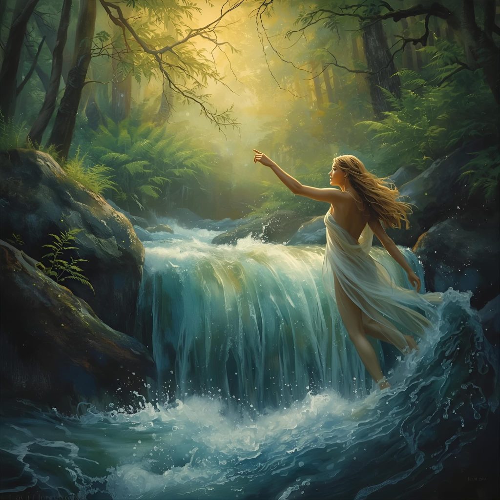 Być może nimfa uważa wszystkich ludzi za złych. Bo nie wie o nich zbyt wiele – zna ich tylko z przekleństw, które słyszała od małżeństwa. Dlatego jest wroga każdemu, kto kąpie się w jej stawie i zakłóca jej spokój.